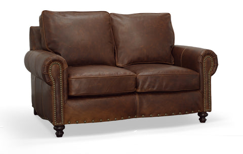 An excellent American-made leather furniture piece, the 959 Hampton Leather Sofa is covered in all top-grain or full-grain leather, and customers can choose between four different grades as well as between a spring cushion and a premium lux down cushion. The 959 Hampton Leather Sofa comes in three different foot colors and three different nailhead colors, making it a very versatile American-made leather furniture piece.